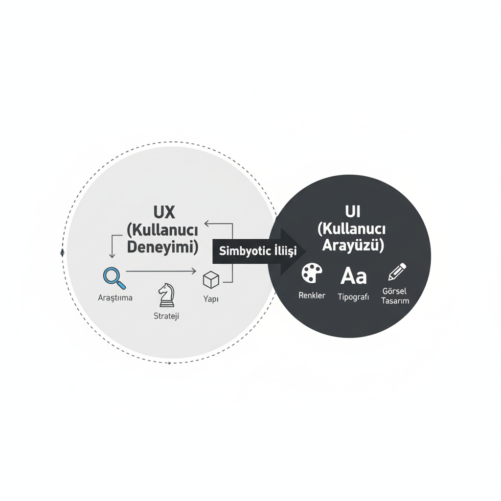 Bu makale, dijital ürün tasarımında sıkça birbirine karıştırılan ancak temelde farklı disiplinler olan UI (Kullanıcı Arayüzü) ve UX (Kullanıcı Deneyimi) kavramlarını ele almaktadır. UI'ın ürünün görsel ve etkileşimli yüzüne odaklandığını, UX'in ise kullanıcının ürünle etkileşimi boyunca yaşadığı tüm sürecin ve hislerin toplamı olduğunu açıklamaktadır. Makale, bu iki alanın temel farklarını, birbirleriyle olan simbiyotik ilişkisini ve başarılı bir dijital ürün için neden ikisinin de hayati öneme sahip olduğunu vurgulamaktadır.